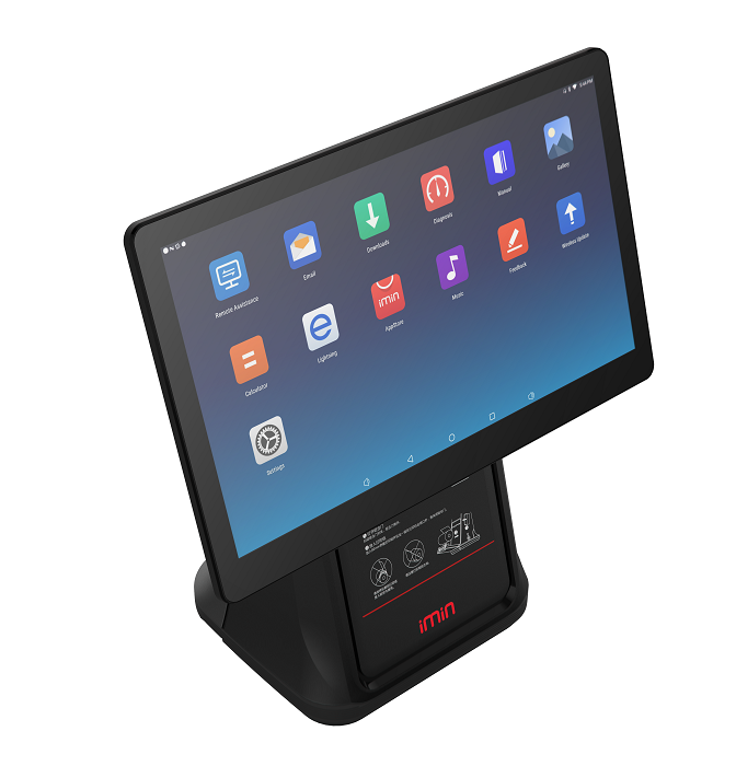 The iMin D4-503 PRO is a smart and sturdy desktop EPOS terminal which uses the Android™ operating system. It has a 15.6” multi-touch capacitive touch screen display for the operator and a built-in space saving 80mm thermal printer.